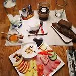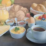 Es erwarten Sie ein einfaches Frühstück mit einer riesigen Auswahl an frischem Gebäck und Käse.